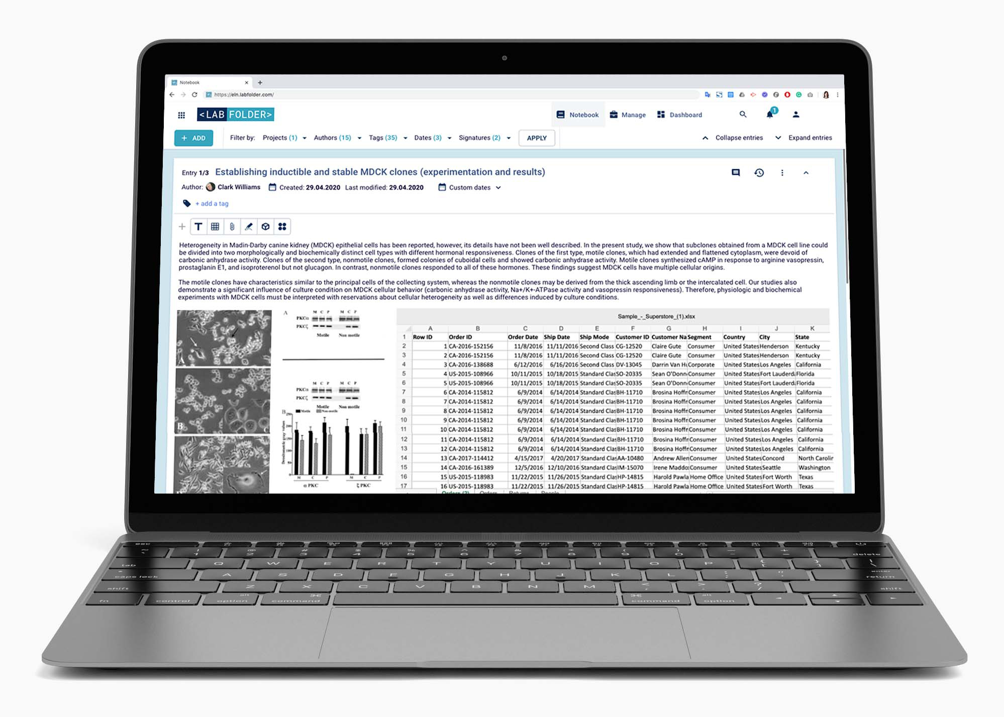 Labfolder is an Electronic Laboratory Notebook (ELN), the paperless solution for scientists to their findings and scale their department's research. In technical terms, it's a web-based application to help scientists keep their data centralized while making it collaborative. The specialized format of the ELN allows the scientists to upload and visualize any type of format required in the lab, making it a powerful tool not to miss any detail in research. Among the functionalities developed, the scope includes a self-built WYSIWYG text editor with Latex support, an integration to a table editor with complex formula support, an integrated chemical formula drawer for chemistry purposes, a self-built file upload and visualization mechanism, as well as a self-built microwell plate editor for biology purposes to integrate with lab devices to read well plates.